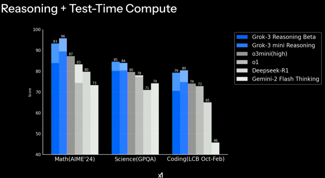 Grok 3和Grok 3 mini在数学、科学和编程基准测试上超越了所有主流模型,包括GPT-4o、Claude 3.5 Sonnet、DeepSeek-V3和Gemini-2 Pro等。
