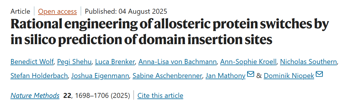 1. Wolf, B., Shehu, P., Brenker, L. et al. Rational engineering of allosteric protein switches by in silico prediction of domain insertion sites. Nat Methods 22, 1698–1706 (2025). https://doi.org/10.1038/s41592-025-02741-z
