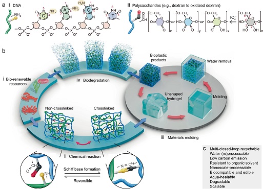 图 | DNA-多糖生物塑料的结构及闭环循环示意图