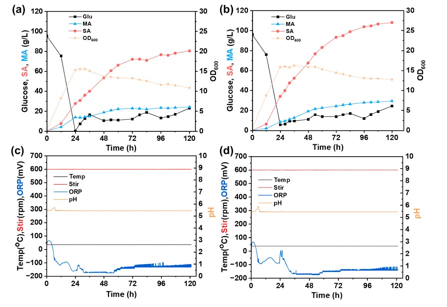 在传统化工领域,琥珀酸是一种重要的生物基平台化学品,可广泛用于生物可降解塑料、溶剂、药物及食品添加剂等领域。过去,工业界主要依赖石油化工路线来生产琥珀酸,但这种方式成本高、能耗大、污染严重,与当下的绿色发展目标格格不入。因此,科学家们一直尝试利用微生物发酵来替代石化路径。然而,如何在保证高产量和低成本的同时减少副产物并提高代谢效率,一直是困扰该领域的关键难题。