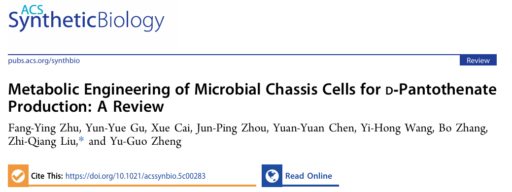 1.Zhu FY, Gu YY, Cai X, et al. Metabolic Engineering of Microbial Chassis Cells for d-Pantothenate Production: A Review. ACS Synth Biol. Published online September 22, 2025. doi:10.1021/acssynbio.5c00283.
