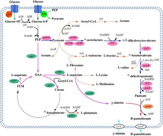 图 | 提升 D-泛酸产量的代谢工程策略总结